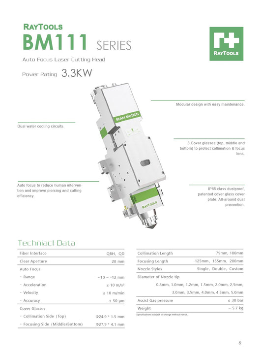 The RayTools BM111 Auto Focus Laser Cutting Head is a high-precision tool designed for seamless, automated cutting of metals like stainless steel, carbon steel, and aluminum. To ensure peak performance and extend its lifespan, it’s crucial to use genuine and compatible spares and consumables.
