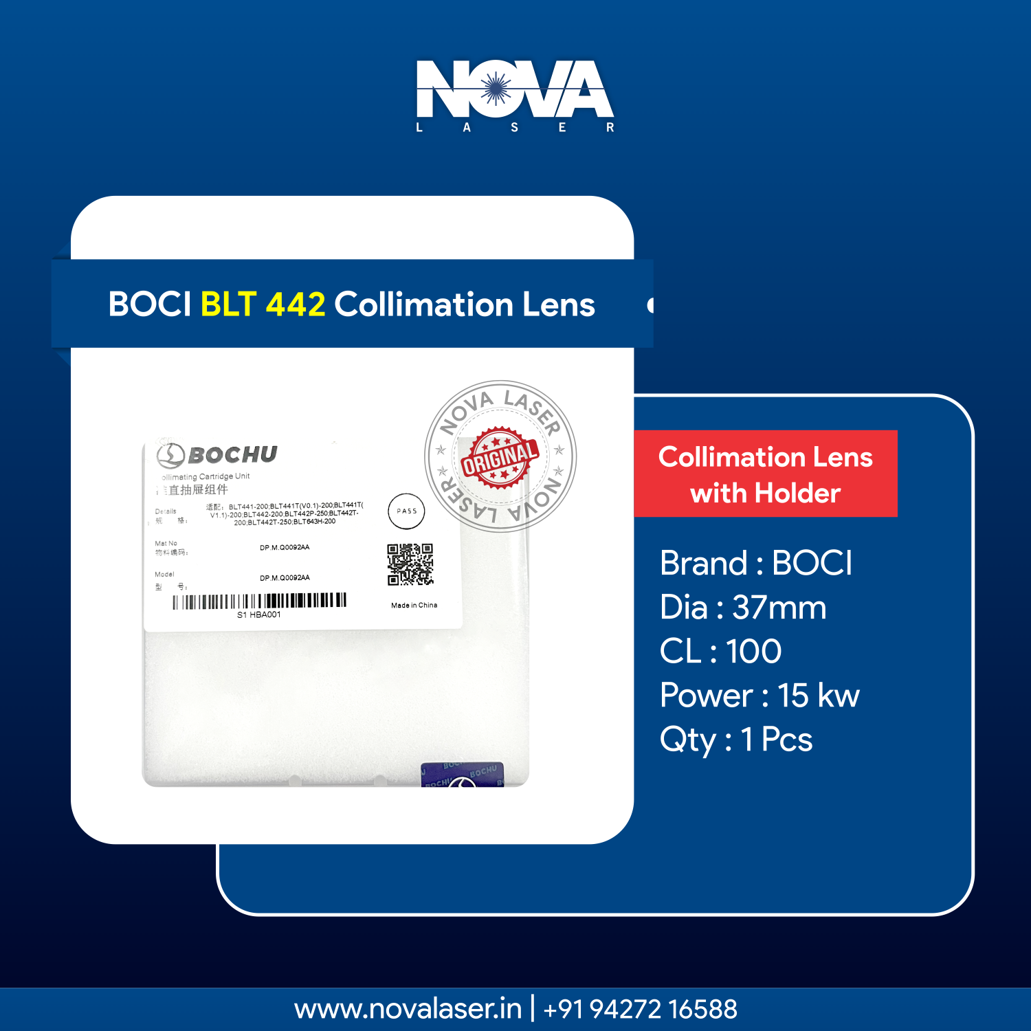Is your BOCI BLT Laser Cutting Head producing burnt edges, weak cuts, or inconsistent beam focus? A damaged or worn collimating lens is often the culprit. Nova Laser brings the 100% original, factory-spec replacement you need to eliminate downtime and restore peak performance to your laser system.